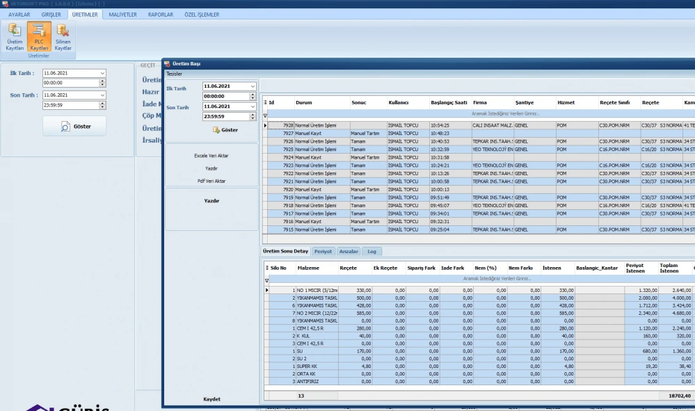 BETONSOFT BETON SANTRALİ OTOMASYON SİSTEMİ